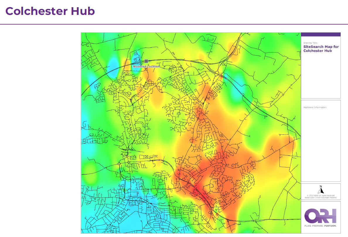 The attached heat map shows the ideal location area for a new Ambulance Hub – 1ha of land is required to facilitate this.